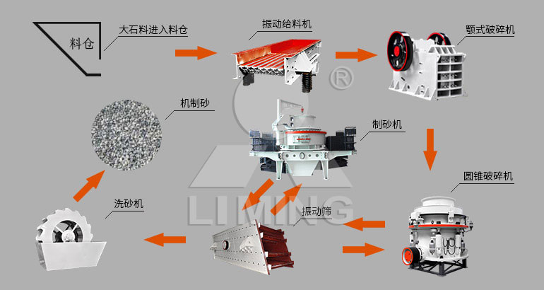 在石料生產線的基礎上增加了用于精細粉碎和整形的制砂機設備,可實現機制砂和碎石料的同步生產,整條生產線施工靈活,出料多樣,可滿足客戶的多種加工要求,達到"一線多用"的目的,是生產高速公路面層料、高速鐵路砂石骨料、水電站砂石料、港口碼頭及機場跑道用碎石料的理想生產線選擇。[查看詳情]