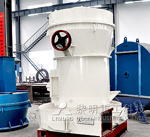 大塊狀物料經(jīng)顎式破碎機破碎到所需要粒度后,由提升機將物料送至儲料斗,再經(jīng)振動給料機均勻定量連續(xù)地送入主機磨室內(nèi)進行研磨。粉磨后的粉子被風(fēng)機氣流帶走,經(jīng)分析機分級,符合細度的粉子隨氣流經(jīng)管道進入大旋風(fēng)收集器內(nèi),進行分離收集,再經(jīng)粉管排出成品粉子。
