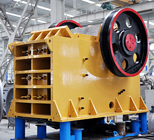 青石破碎機、青石碎石機主要有機架、偏心軸、大皮帶輪、飛輪、動鄂、側護板、肘板、肘板后座、調隙螺桿、復位彈簧、固定鄂板與活動鄂板等組成,其中肘板還起到保險作用。