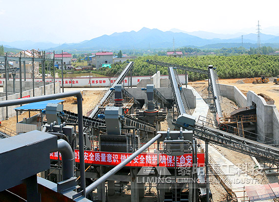 原料經(jīng)FH1260棒條振動給料機進入PE750×1060顎破進行初段破碎,其中≤120mm物料通過給料棒條隔篩,與顎破破碎的物料一同輸送至S5X2460-3振動篩進行篩分水洗處理,將原料中的成品砂篩分水洗后直接進入0-5mm成品砂倉。其中篩分后的≥40mm物料輸送至圓錐破緩沖倉,圓錐破緩沖倉的物料通過皮帶輸送機送至HPT300多缸液壓圓錐破二段破碎,經(jīng)過多缸圓錐破HPT300破碎后的物料進入篩分系統(tǒng)S5X2460-3進行篩分處理,將≥31.5mm物料返回中圓錐破緩沖倉,再進入多缸圓錐破HPT300破碎形成閉路循環(huán)。≤31.5mm成品混合料進入篩分系統(tǒng)S5X2460-3篩分分級,成品料最終分別輸送至成品倉儲存。原料中5-40mm物料經(jīng)S5X2760-3振動篩篩分后進入5X1145制砂機緩沖倉,經(jīng)制砂機5X1145破碎≤31.5mm成品砂進入成品砂倉。≥31.5mm物料返回制砂機緩沖倉,再進入制砂機5X1145破碎制砂形成閉路循環(huán)。